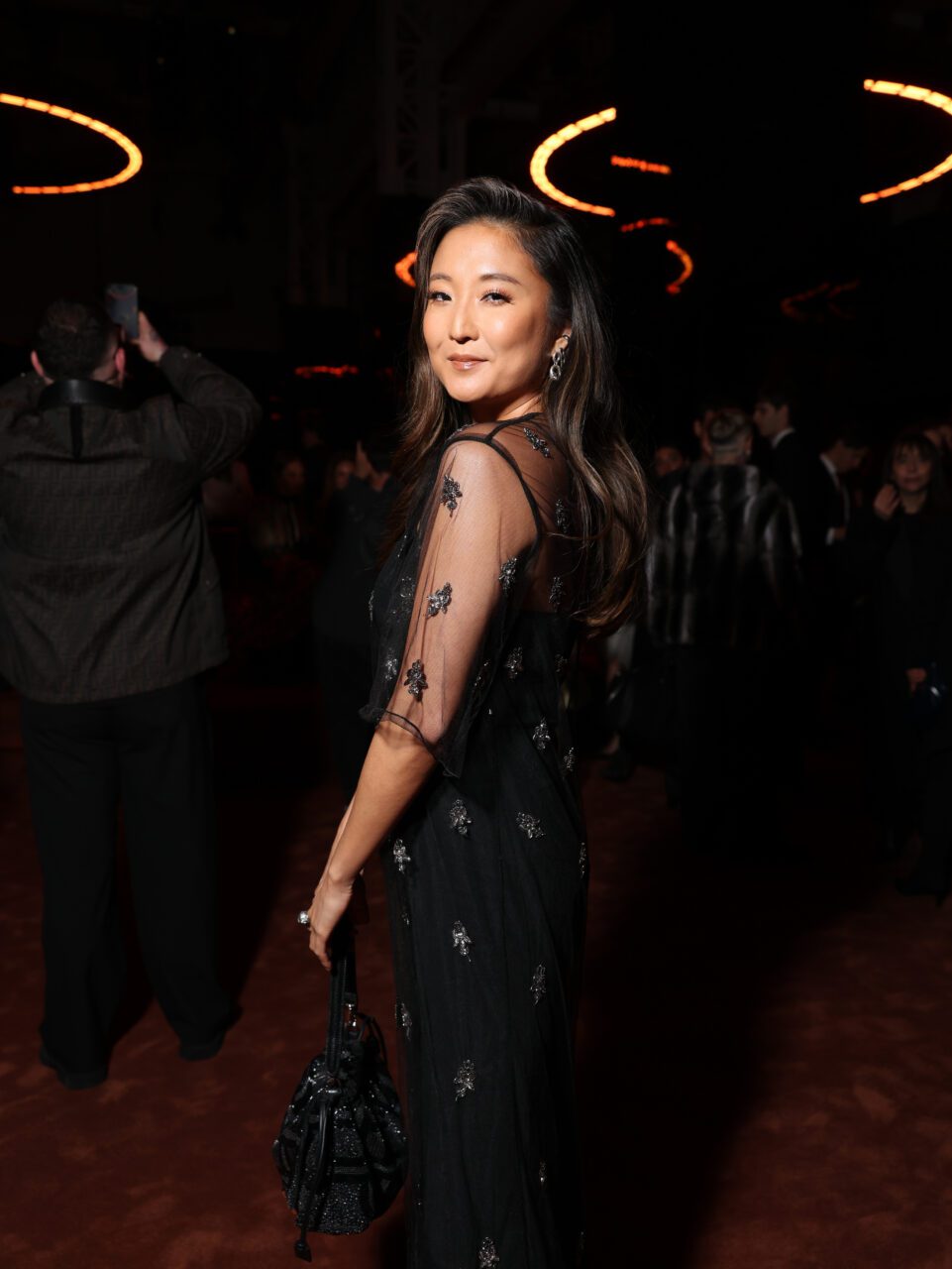 100 yıllık stili değerlendirirken, FENDI’nin terzilik ustalığı dikkat çekiyor. Roma akşamlarının cazibesi, mat ve parlak dokuların oyunu ile devam ediyor. Tül ve tırnak şeklinde payetler, FENDI ustalığının millefoglie tekniğiyle hazırlanmış gece kıyafetlerinde çerçeveleyici bir rol üstleniyor: her zaman görkemli, ama bir o kadar da hafif.
