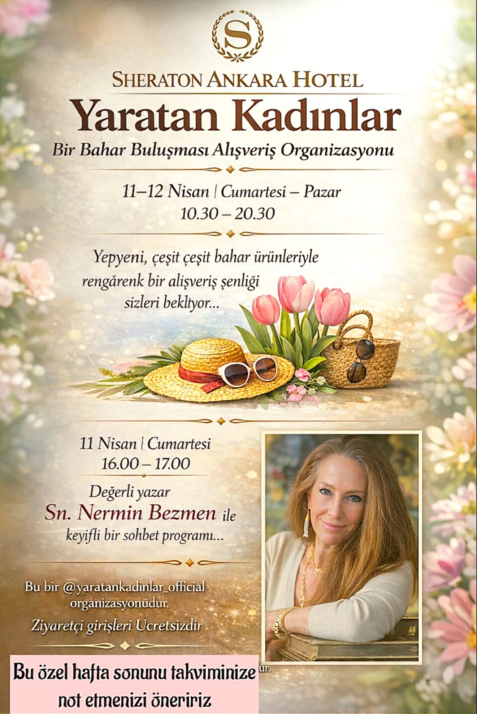 Ayrıca Yaratan Kadınlar Bahar Alışveriş Organizasyonu kapsamında, değerli yazar Nermin Bezmen Savacı ile özel bir söyleşide buluşuyoruz. Hayata, kayıplara ve yeniden var olma gücüne dair ilham veren bu sohbeti kaçırmayın.