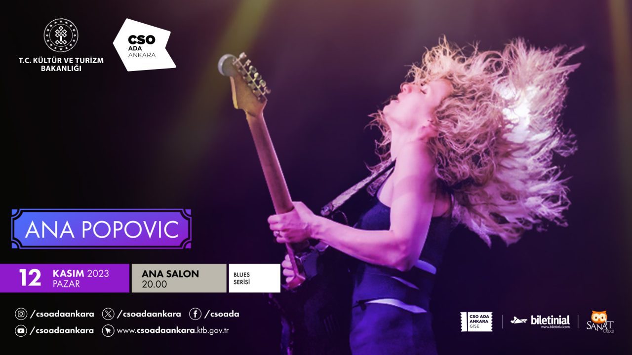 CSO Ada Ankara Blues Serisi kapsamında 12 Kasım’da dünyaca ünlü gitarist Ana Popović’i ağırlayacak. ‘Power’in dünya turnesi kapsamında Ankaralı müzikseverlerle buluşacak olan Popović, yeni albümünde bugüne kadarki en iddialı işini ortaya koyuyor.