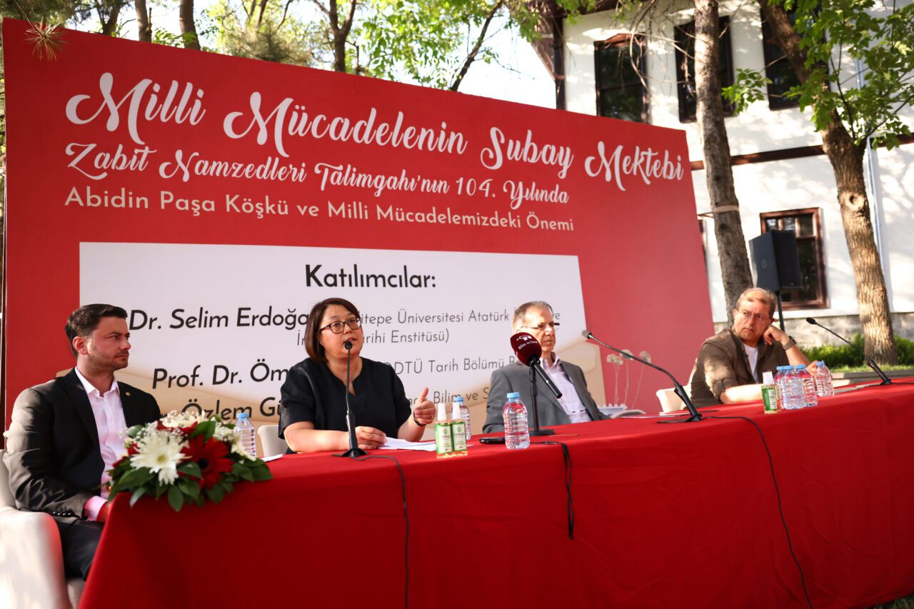 Konumu itibarıyla Ankara’nın en güzel yerlerinden olan ve Cumhuriyet yıllarında Türk ordusunun subay ihtiyacını karşılayıp Sınıf-i Muhtelife Zabit Namzedleri Talimgahına ev sahipliği yapan Abidin Paşa Köşkü’nün genç subay adaylarının eğitimlerine devam etmelerine sunduğu katkıya değinen konuşmacılar, Büyük Önder Mustafa Kemal Atatürk’ün ileri görüşlülüğünün de Milli Mücadelede oynadığı önemli rolü ifade ettiler.