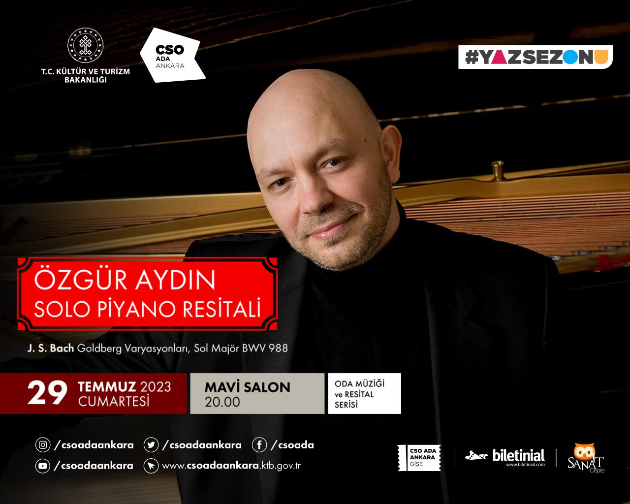 Etkinliklerine yaz sezonunda devam eden CSO Ada Ankara, 29 Temmuz Cumartesi günü ünlü piyanist Özgür Aydın’ı solo piyano resitaliyle ağırlayacak. Özgür Aydın, klasik müzikseverler için soluk kesici kurgusu, mükemmel yapısı, Holywood filmlerinde de kullanılan büyüleyici aryası ve birbirinden güzel varyasyonları ile dinleyiciyi barok müziğin en sihirli evrenlerinden birine taşıyan Goldberg Varyasyonları’nı yorumlayacak.