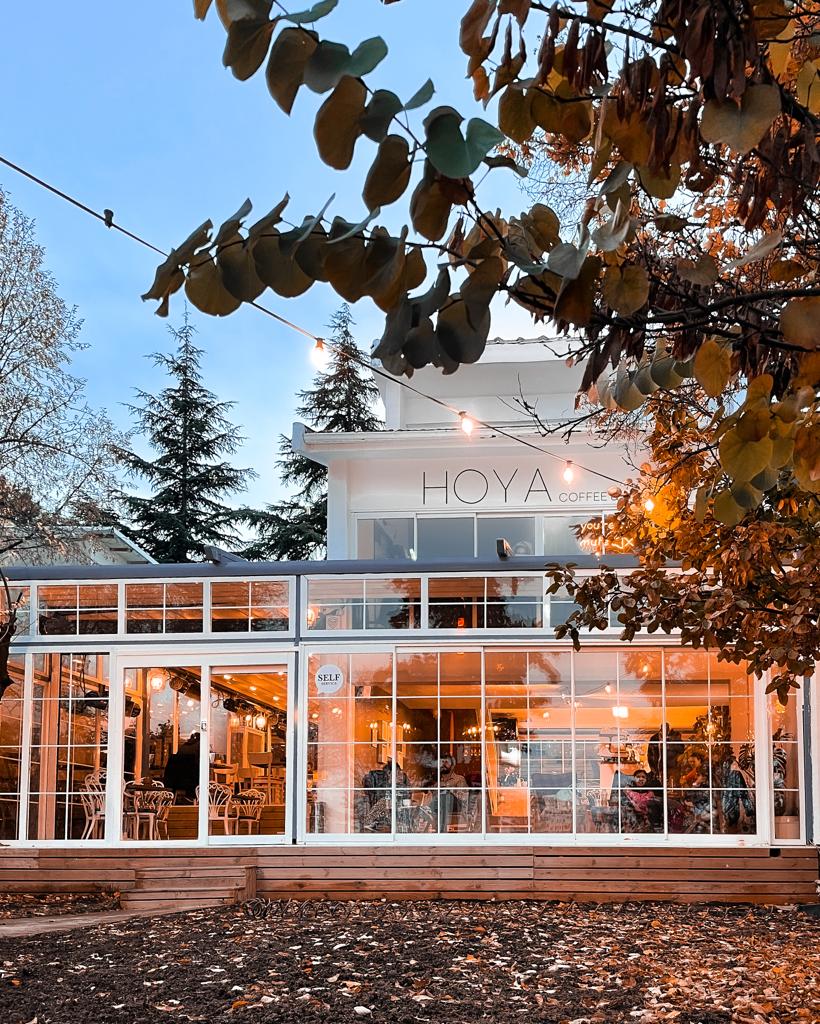 Şehrin boğucu havasından uzaklaşıp, ferah ve huzur veren atmosferdedört mevsim lezzetli tatlılar, sağlıklı atıştırmalıklar ve nefis kahveler eşliğinde sohbete doyabilirsiniz. Hoya, arkadaş buluşmalarının yanında çalışmak isteyen konukları için de harika bir çalışma ortamı sunuyor.