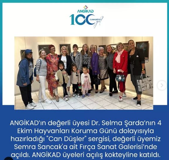 ANGİKAD üyesi Dr. Selma Şarda’nın 4 Ekim Hayvanları Koruma Günü dolayısıyla hazırladığı “Can Düşler” sergisi açıldı. Hem açılış tarihi, hem konusu ve amacı çok anlamlı olan sergi 24 Ekim tarihine kadar sanatseverler tarafından gezilebilir…