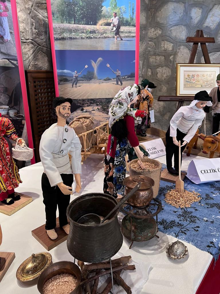 Sergide resim, yöresel bebekler, el işi ürünler ve yöreye özgü kıyafetlerin yanı sıra Anadolu’daki şapka kültürünü yansıtan şapkalar yer alıyor.