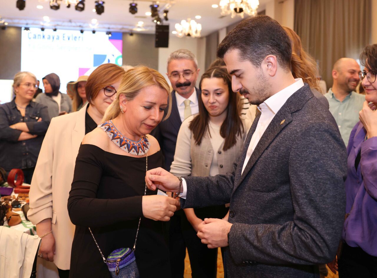 Çankaya Belediyesinin vatandaşların çeşitli kurslarla kendilerini geliştirmelerine imkan sağladığı Çankaya Evlerinin ortak yıl sonu sergisi sona erdi. Başkan Hüseyin Can Güner de Zübeyde Hanım Sosyal Tesisinde gerçekleşen sergiyi ziyaret etti. Bademlidere Çankaya Evlerinde eğitim alan kursiyerlerin eserlerinin yer aldığı sergide yoğun bir katılımla tamamlandı. Tuğba Aydın, Öğretmeni Nurgül Aydın ile birlikte Hüseyin Can Güner’e yaptığı el emeği göz nuru bir eserini hediye etti.