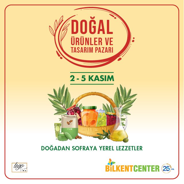 Bilkent Center, gelenekselleşen Doğal Ürünler ve Tasarım Pazarı’nı ziyaretçileri ile buluşturacak. 2-5 Kasım tarihleri arasında gerçekleşecek olan etkinlik, doğal ürünlere doğrudan ulaşmak isteyenleri ağırlayacak…