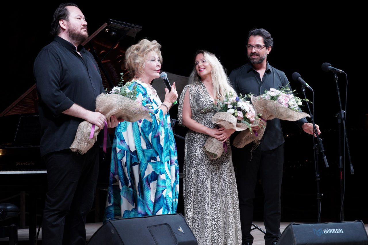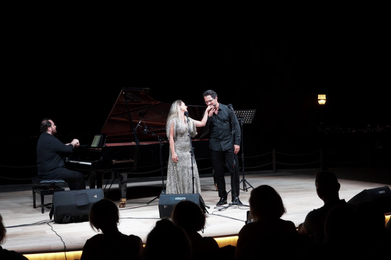 Sırayla sahneye gelen sanatçılar, konserin sonunda alkış yağmuruna tutuldu. İzleyicinin bis isteiği üzerine üçlü Mozart’ın Don Giovanni operasından bir düet seslendirdi: “Là ci darem la mano” başlıklı eser Haziran ayında kaybettiğimiz keman virtüözümüz Suna Kan’ın anısına icra edildi.