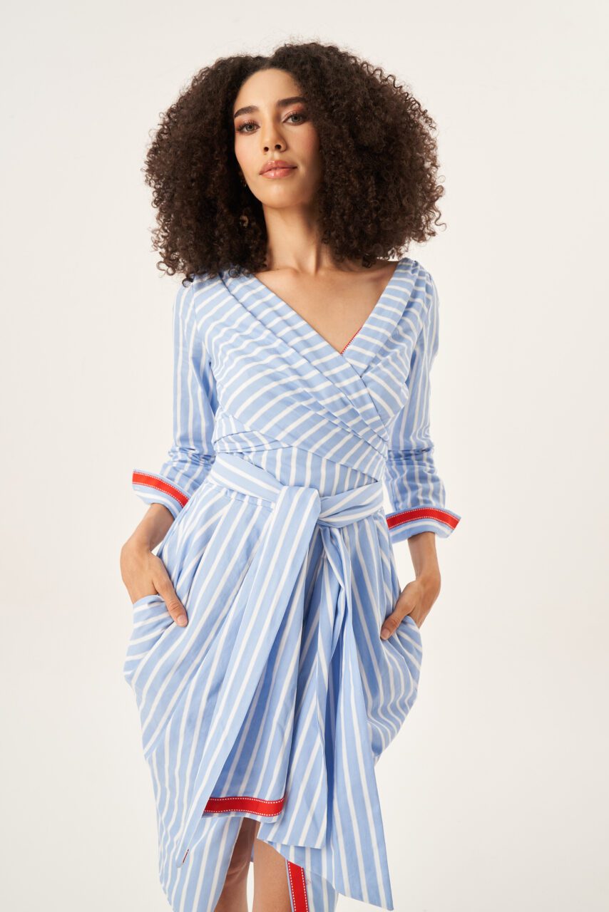 Adaların dingin atmosferinden beslenen LENA özel tasarım elbise, vazgeçilmez çizgili tasarımların en güzel örneklerinden biri olarak beğeni toplarken, kırmızı şerit detayları ile dikkat çekiyor. Koleksiyonun en dikkat çekici parçalarından biri olan bu tasarım, sıcak havanın ılık esintisini stilinize yansıtacak, şehirde ve sayfiyede rahatlıkla kullanabileceğiniz bir seçenek sunuyor.
