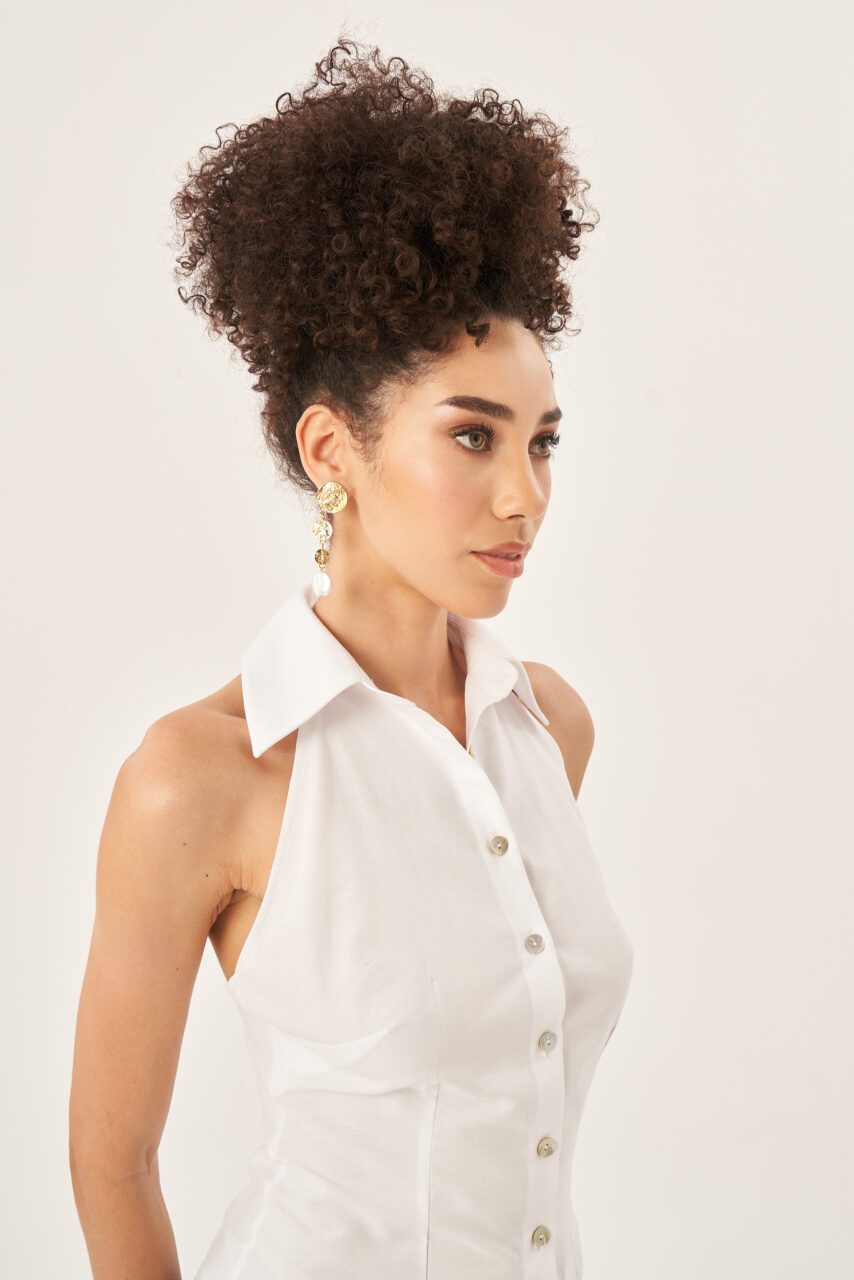 Her biri kendi içinde özel, bir arada bütünün parçası olan Antigoni6 koleksiyonunda yer alan VIVIEN bluz hem beyaz gömlek havasında hem de bluz hissi veriyor. Kolsuz detayıyla yazı selamlarken, beyaz rengiyle asaleti vurguluyor. Koton kumaştan üretilen Vivien modeli gündüzden geceye, sizi uzun bir yolculuğa çıkarıyor.
