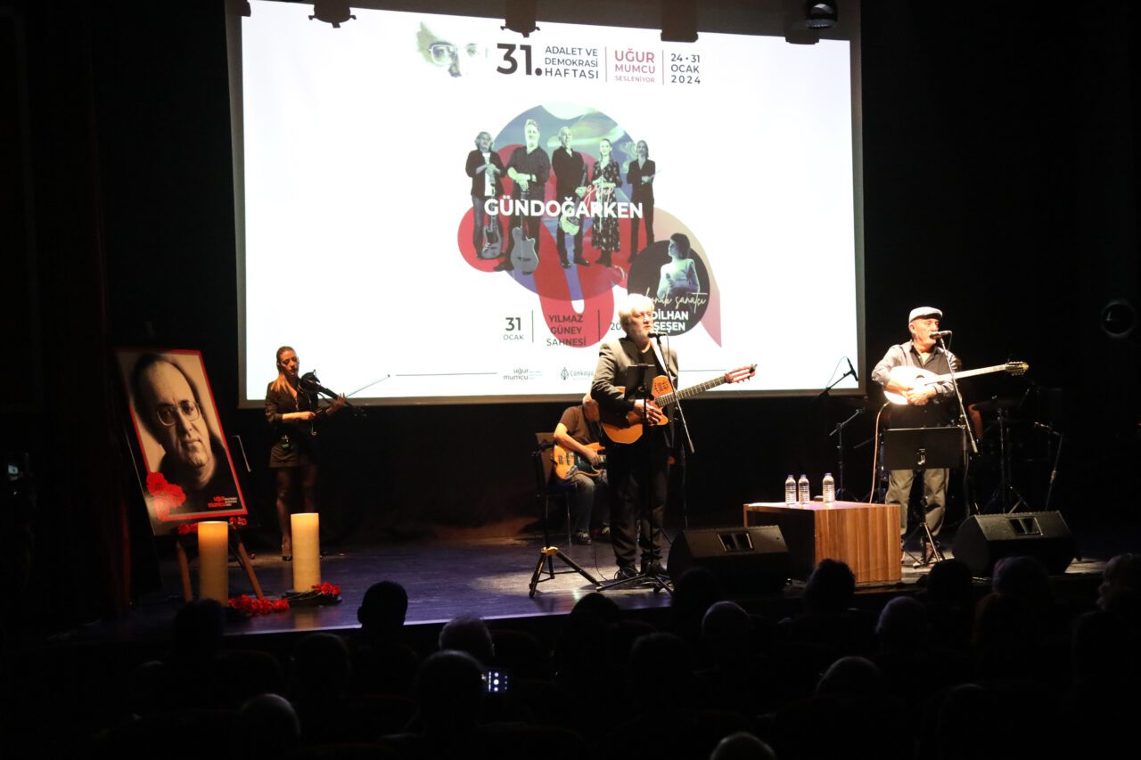Çankaya Belediyesi, bu yıl 31’incisi düzenlenen Adalet ve Demokrasi Haftasına ev sahipliği yaptı. Uğur Mumcu Araştırmacı Gazetecilik Vakfı (um:ag) öncülüğünde ve çok sayıda STK’nın katılımıyla hazırlanan program, Uğur Mumcu’nun katledildiği 24 Ocak’ta başlayıp Prof. Dr. Muammer Aksoy’un katledildiği 31 Ocak’ta sona erdi. Kapanışta, Grup Gündoğarken şarkılarını ‘adalet’ için söyledi.