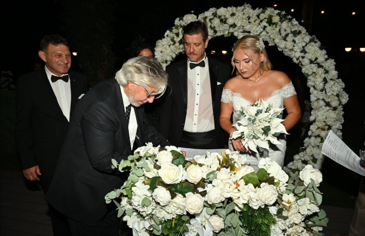 Düğünde kimler yoktu ki… Uluslararası seçkin insanlar demetinde; Dubai’den kardeşinin düğünü için gelen abla Alexandra Brandes. Ferry ailesinin kadim dostu nikah şahidi Akademisyen gazeteci Erol Mütercimler, Emekli Amiral Türker Ertürk, ressam Bedri Baykam ve eşi hanımefendi, TÜSİAD eski Başkanı AldoKazlowski, Aujourd’hui La Turquie gazetesi Genel Yayın Yönetmeni Hossein Latif Dizadji, Deniz Ticaret Odası Başkanı armatör Süleyman Bursalı, Armatör Adil Pandır, Cengiz Abbas, Sezen Cumhur Önal, Çınarcık Belediye Başkanı Avni Kurt, Yalova eski Belediye Başkanı Vefa Salman gazeteci spor yazarı Osman Tanburacı, Egiptolog ve Açık Radyo’da Kıyı-Köşe İstanbul programı yapımcısı Turgay Tuna, sanatçı Süha Uygur, Ferhan Menekşe, Recep Toker… Türkiye’nin her yerinden gelen tanınmış iş adamları Türkiye ve İstanbul aşığı Ferry’lerin 7. göbekten oğulları Stephen ve İrem Hanımefendi’nin nikahında buluştular…