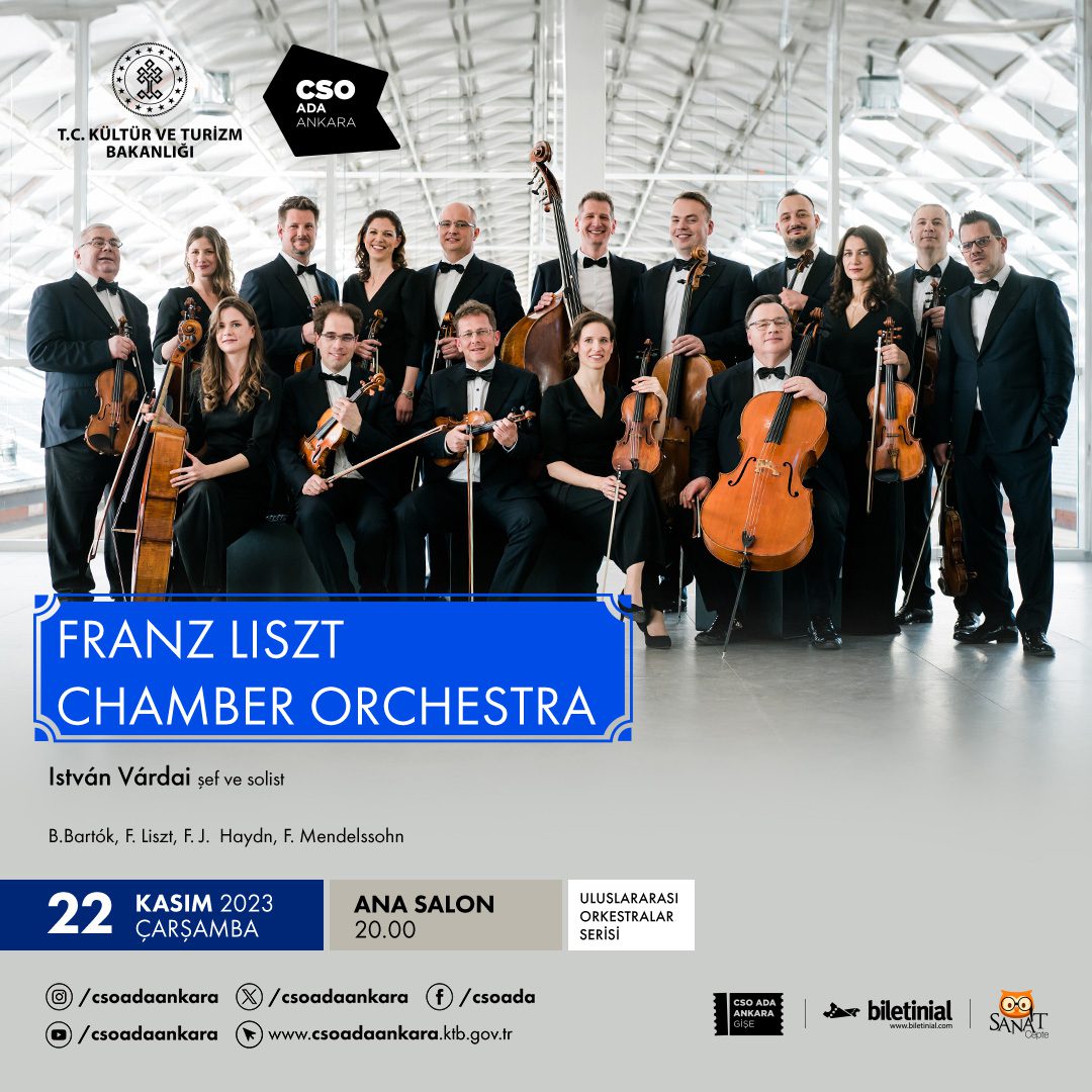 Başkentin kültür ve sanat adası CSO Ada Ankara, Uluslararası Orkestralar Serisi ile dünyaca ünlü orkestraları ağırlamaya devam ediyor. 60. kuruluş yılını kutlayan Avrupa’nın önde gelen oda orkestralarından Franz Liszt Chamber Orchestra, klasik müzikseverler için kaçırılmayacak bir konserle 22 Kasım’da CSO Ada Ankara’ya konuk oluyor.