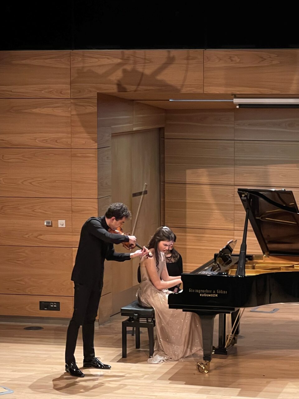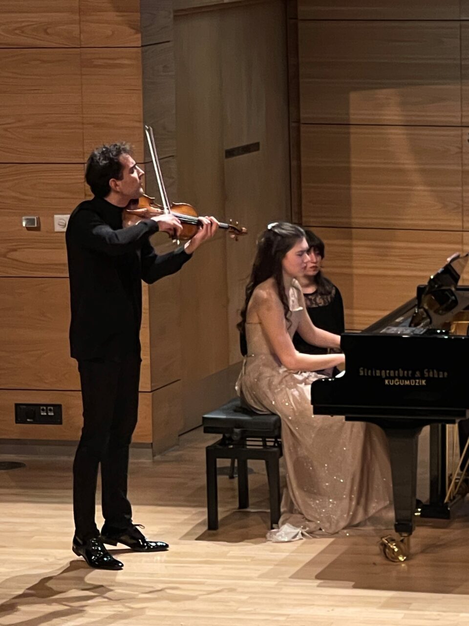Genç piyanist İlyun Bürkev ve keman sanatçısı Elvin Hoxha Ganiyev, 15 Şubat Cumartesi akşamı CSO Ada Ankara’da müzikseverlerle buluştu. Sanatçılar, Beethoven’dan Saygun’a uzanan geniş repertuvarları, teknik ustalıkları ve sahnedeki uyumlarıyla izleyicilerden büyük alkış aldı.