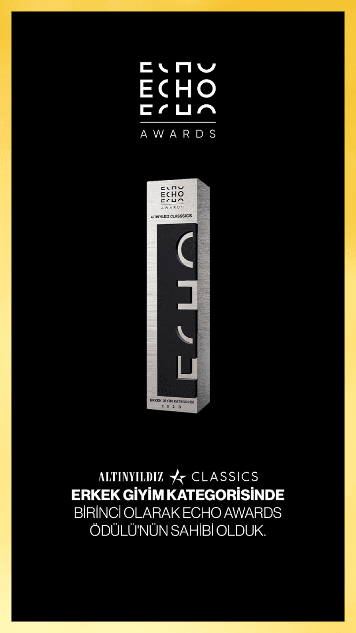 Marketing Türkiye ve AKADEMETRE iş birliğinde gerçekleştirilen ve kapsamlı bir araştırmaya dayanan ECHO Awards’un kazananları 25 Mayıs 2023 Perşembe akşamı Divan Kuruçeşme’de gerçekleştirilen ödül töreniyle açıklandı. Erkek giyim kategorisinde birinciliği alan Altınyıldız Classics, müşterilerine değer veren ve en iyi alışveriş deneyimini yaşatan e-ticaret platformu olarak bu ödüle layık görüldü.