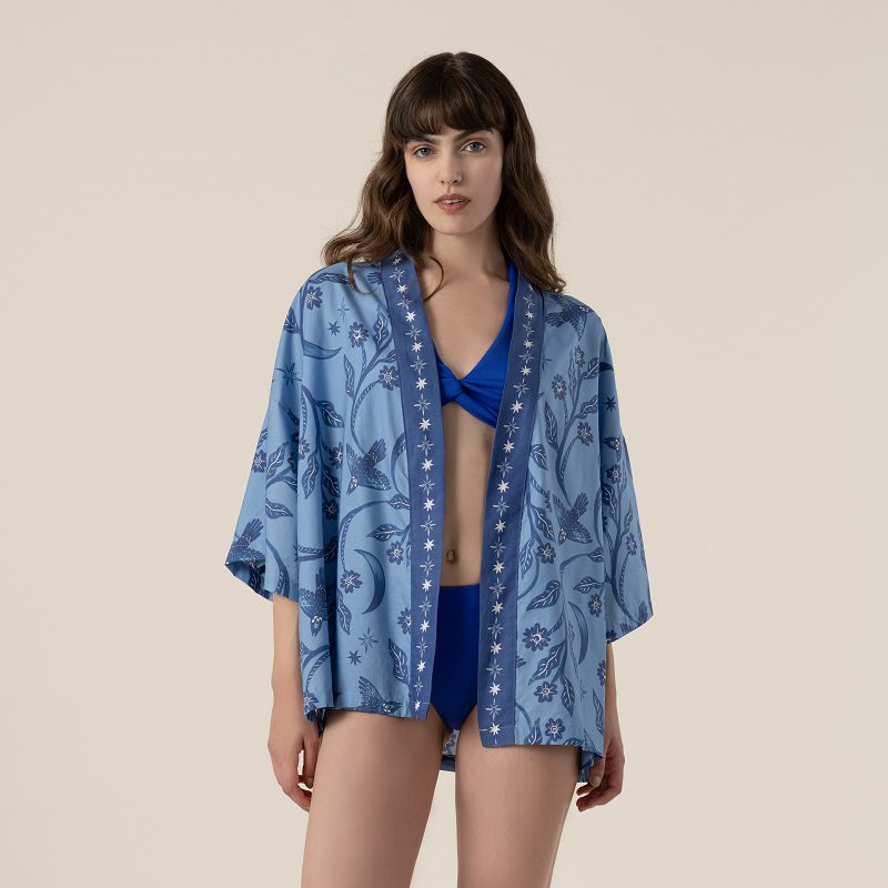 Zsa Zsa Zsu‘Blue’ koleksiyonuyla sofra takımlarından yatak odası aksesuarlarına, ev dekorasyonundan plaj giyimine kadar geniş bir yelpazede ürünler sunarak, kıyı kasabalarının özgür ve rahat atmosferini evinize getiriyor. Klasik deniz temasını etnik ve mitolojik sembollerle yeniden yorumlayan bu koleksiyon, yaz ruhunu yansıtan ferah bir renk paleti sunuyor. Lazuli mavisi ve Prusya mavisi gibi derin tonlar, beyaz, bej ve ekru zeminlerle harmanlanarak güneşin altın sarısı ışıltılarıyla buluşuyor.