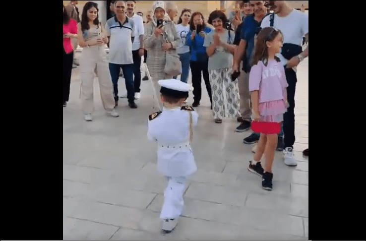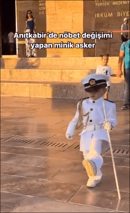 Anıtkabir’e gelenler arasında bulunan denizci üniformalı erkek çocuğunun, saygı nöbetindeki hareketleri taklit edişi büyük beğeni topladı. Minik çocuğun sosyal medyada yansıyan sevimli hareketleri kısa sürede çok sayıda etkileşim aldı.