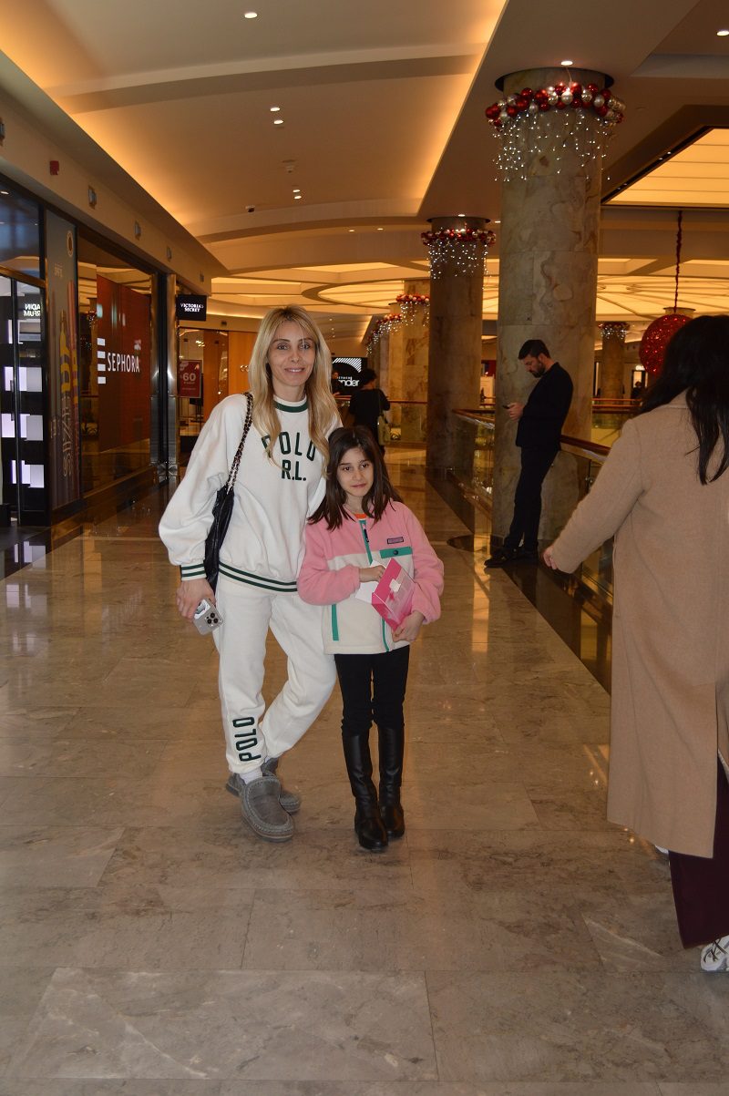 Moda konusunda çok zevkli seçimleri var” diyen Nur Fettahoğlu ve kızı muhabirlere birlikte poz verdikten sonra mağazaları gezdiler.