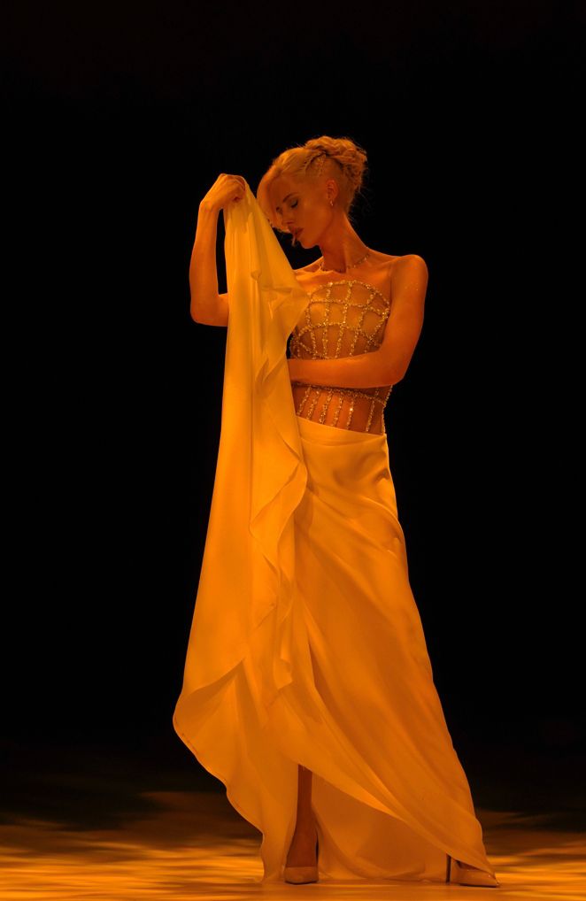 Ayla Ölçer’in gelinlik ve abiye tasarımları podyumda adeta birer sanat eserine dönüştü. Solo defile formatında sunulan koleksiyon, izleyicilere baştan sona bütüncül ve etkileyici bir moda deneyimi yaşattı.