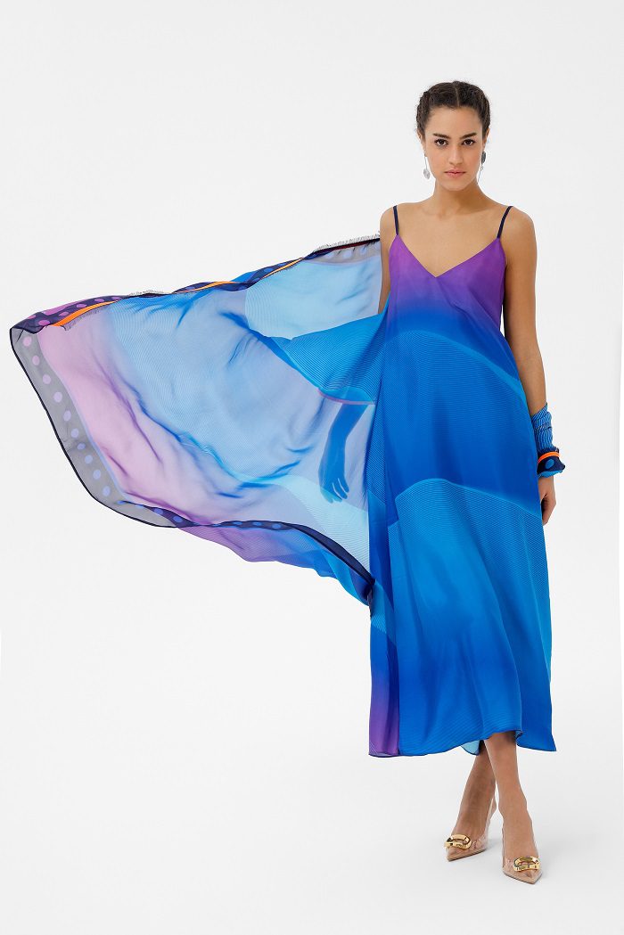 Farklı renk kombinleriyle tasarlanan desenlerin uygulandığı kaftanlar, ince vual, ham pamuk ve ipek detaylarla zenginleşiyor. Yaşayan ve yaşatan renkler, formlar İlkbahar Yaz 2023 kaftan koleksiyonunun öne çıkan diğer özelliklerinden.