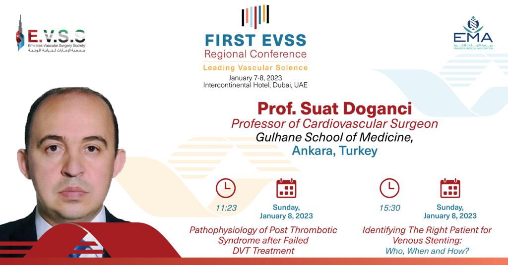 Birleşik Arap Emirlikleri Damar Cerrahisi Derneği (EmiratesVascularSurgerySociety – EVSS) tarafından ilk kez düzenlenen ve bölgenin ilk damar cerrahisi konferansı olan First EVSSRegional Conference, 7-8 Ocak 2023 tarihleri arasında Dubai Intercontinental Hotel’de gerçekleşti.Bölgedeki en büyük damar cerrahisi toplantılarından biri olan ve tüm dünyadan alanında önder isimleri ağırlayan konferansa, Türkiye’den Kalp ve Damar Cerrahisi Uzmanı Prof. Dr. Suat Doğancı katıldı.
