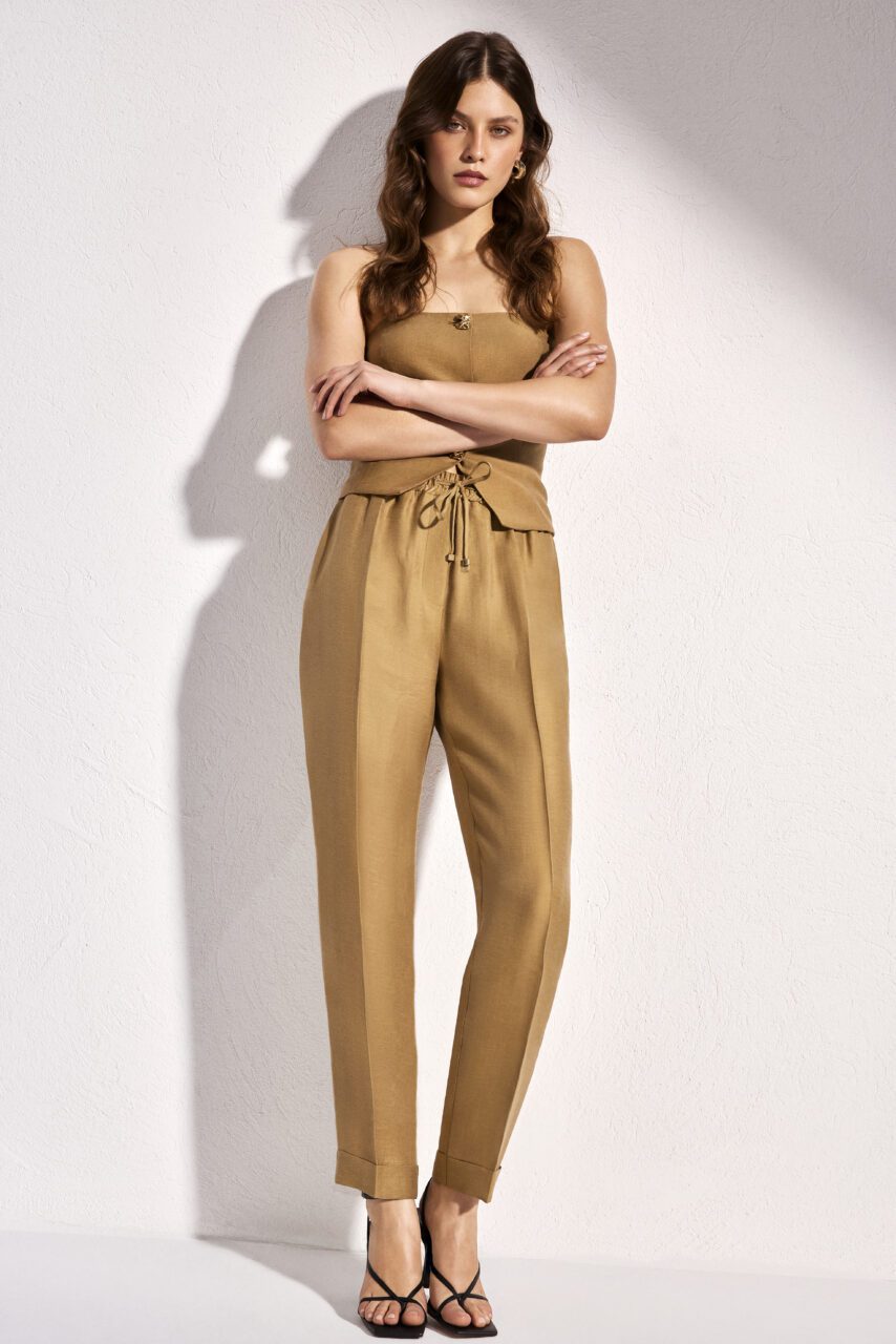 Nefes alan kumaşlar, hafif kesimler ve sade çizgilerle öne çıkan koleksiyon; yalın ama etkileyici bir görünüm sunuyor. Kadın koleksiyonunda yer alan keten elbiseler, oversize gömlekler ve yüksek belli şortlar; bej, kum sarısı, açık yeşil ve kiremit gibi doğadan ilham alan tonlarla her ana uyum sağlayan zahmetsiz bir şıklık yaratıyor.