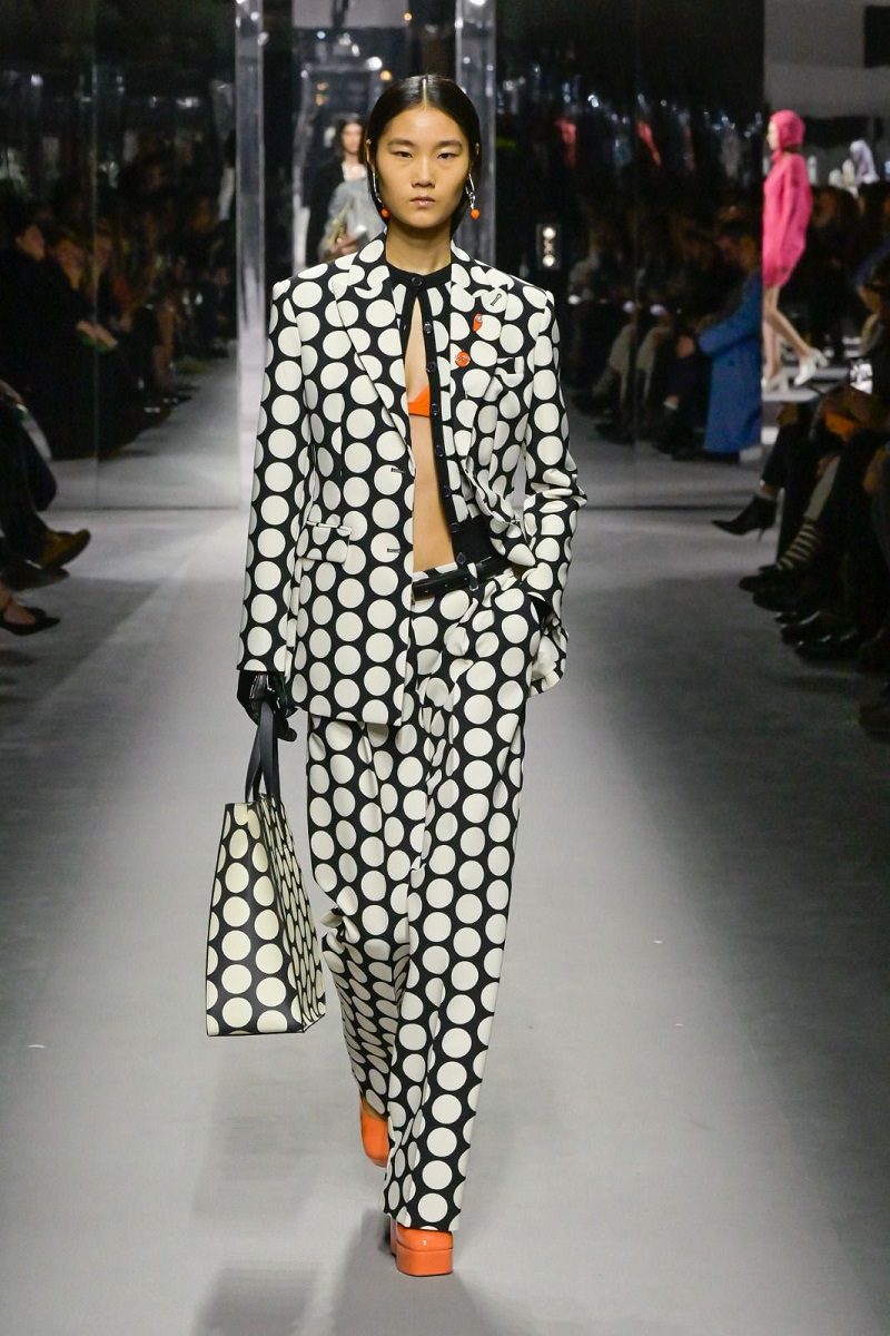 Daireler ve çizgiler dalgaların, sonsuz tekrarlanan desenlerin, mini veya maksi baskılarda, pamuklular, denim ve poplinlerin yanı sıra harikulade hazırlanmış trikolar için mükemmel ölçülerde bir araya geliyor. Stilize çiçekler, mantarlar, mermerler, yatay veya alaylı çizgiler ve kazayağı gibi baştan aşağı baskılılar, puffer ceketlerde, eteklerde, kazaklarda, jilelerde ve sweatshirtlerde yerini alıyor.