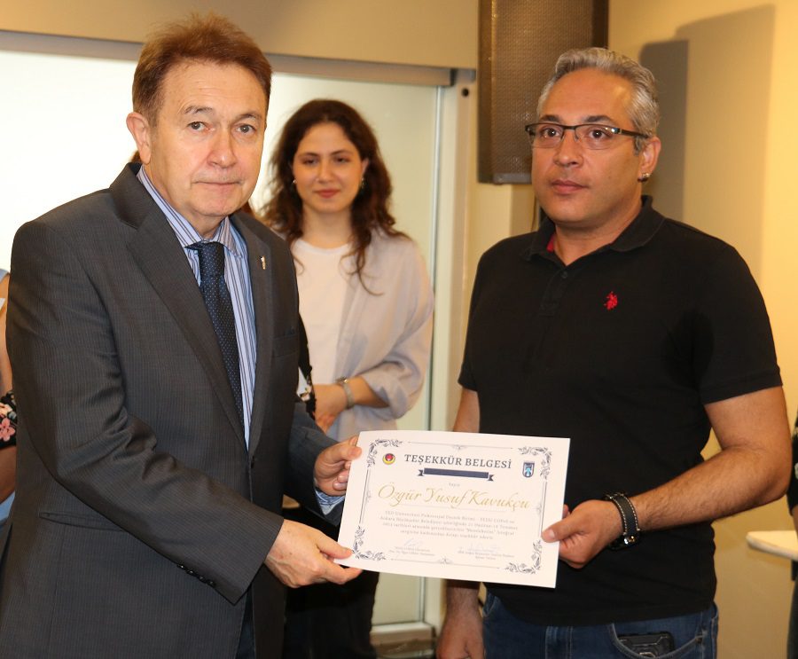 Konuşmalardan sonra proje katılımcıları olan Özgür Yusuf Kavrukçu, Hatice Tekin, Sunay Koşman, Özkan Pehlivan, Nilay Atasoy, Şahin Fırat, Mehmet Şükrü Karakeçi, Bilal Emir, Filiz Karaman, Zafer Ezdeşir, Ceylan Aydınoğlu, Metin Arslan ve Yağmur Ezdeşir’e TED Üniversitesi Rektörü Prof. Dr. İhsan Sabuncuoğlu ile ABB Aile Yaşam Merkezleri Şube Müdürü Şinasi Örün tarafından takdir belgeleri verildi.