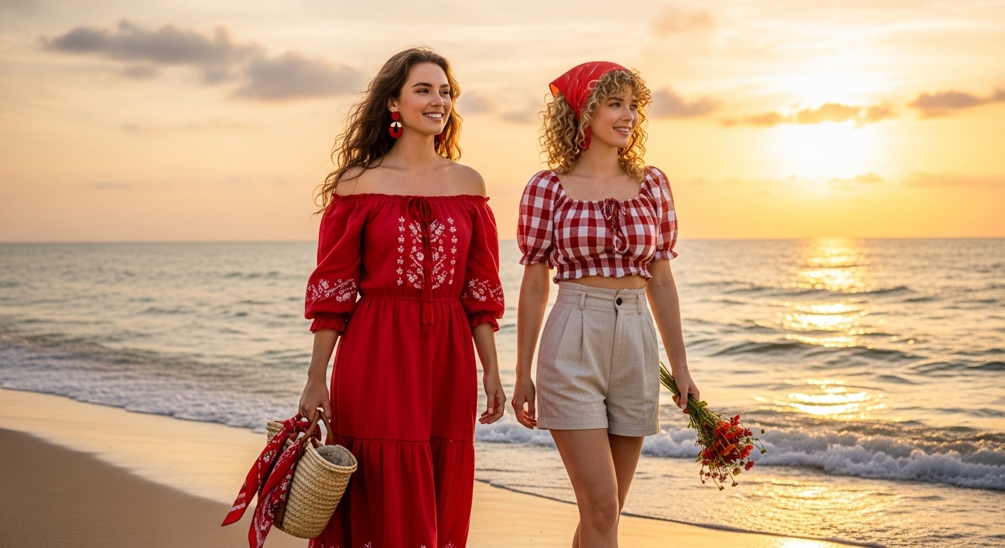 Kıyafet seçiminde keten ve dantel detaylı yazlık elbiseler, fırfırlı etekler, kısa kollu düğmeli gömlekler, korsajlı üstler ve kalp yaka detaylar ön plana çıkıyor. Etek tercih etmeyenler içinse bermuda şortlar ya da paçaları hafif açılan bootcut pantolonlar ideal seçenekler arasında yer alıyor.